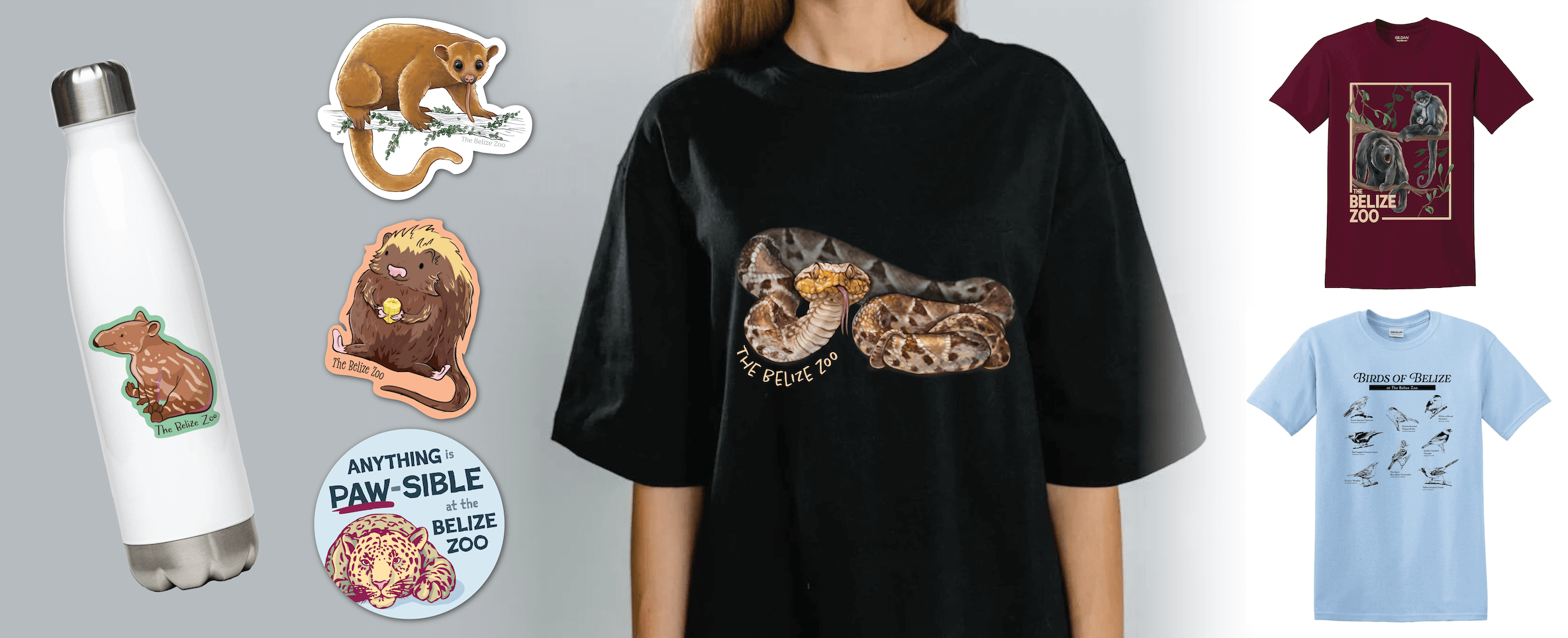 To celebrate World Tapir Day, we created a special edition design featuring the Central American tapir, Belize’s national animal and a favorite at the Belize Zoo. This design was used for both a shirt and a sticker, combining our signature illustration style with a touch of whimsy and charm. Following the same creative direction as the main collection, it highlights the tapir in a way that’s both engaging and memorable. The design offers a fun, meaningful way for visitors to show their support for wildlife and take home a piece of the celebration.