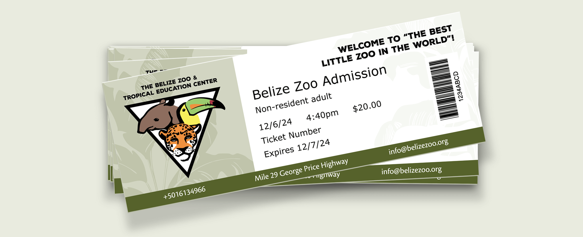 This refreshed ticket design for the Belize Zoo features a clean, modern layout that incorporates the zoo’s new logo and a soft, nature-inspired color palette. The redesign balances functionality with visual appeal, offering visitors a welcoming first impression that reflects the zoo’s mission of conservation, education, and wildlife appreciation.